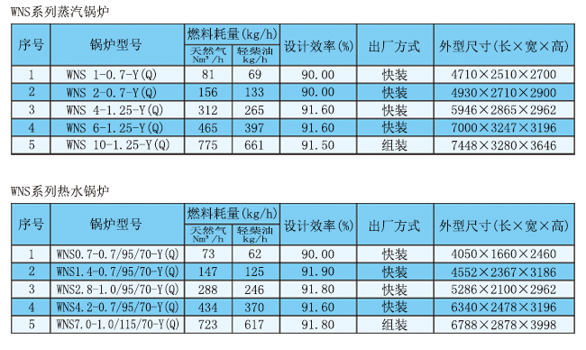 結構簡介:該型式鍋爐采用濕背式內燃三回程。第一回程為波紋爐膽、第二、三回程為螺紋煙管。燃燒設置自動點火、自動操作、程序控制和熄火保護裝置。適合輕柴油、重油、天然氣、煤氣等不同燃料。WNS型鍋爐具有安全可靠、熱效率高、外型尺寸小、外型美觀等特點。